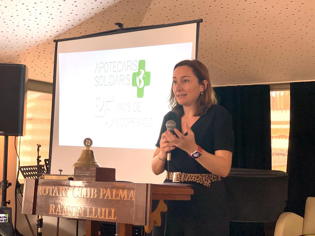 El passat dimarts 10 de març, Cristina Mataró, presidenta i Juan Alberto Segura director tècnic d’Apotecaris Solidaris varen ser convidats pel Club Rotary Ramon Llull de Palma per explicar la tasca humanitària que realitza la nostra ONG arreu del món. Gràcies a aquesta oportunitat, Crisinta Mataró explicà els principals projectes de cooperació sanitària, d’emergències i de sensibilització que es realitzen des de les Illes Balears. Especialment és va presentar el projecte per al finançament de malalties infeccioses a l’Hospital d’Ebomé a Camerun, un hospital que atén a més de 2.000 persones al mes amb atenció especial a la població sense recursos i els pigmeus.